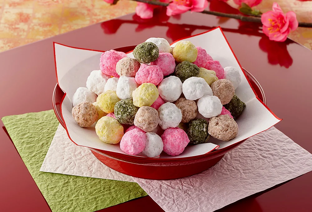 ふんわりとした和の風情を纏った、「三色蹴鞠(さんしょくけまり)」。この可愛らしい練りきり和菓子は、緑・ピンク・辛子色の三色が愛らしく輝き、まるで小さな宝石のよう。一口サイズで食べやすく、見た目にもこだわって作り上げられました。